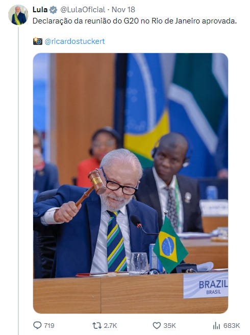 Among the priority discussion points on the agenda for the heads of state and governments arriving in Rio this week were the fight against hunger, poverty, and inequality, supporting sustainable development, and the reform of global governance. Climate change and the wars in Ukraine and the Middle East were also prominent topics of discussion.
