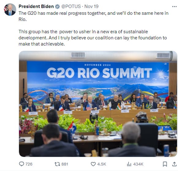 This G20 summit will be US President Joe Biden’s last before he hands over power to President-Elect Donald Trump in January.
